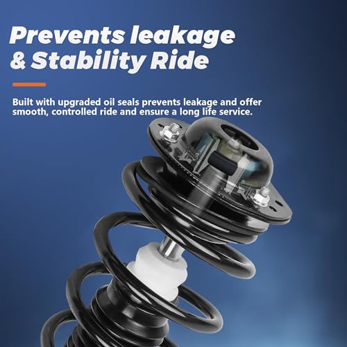 - [ Easy Installation ]: Comes with pre-assembled Strut and Shock absorber assembly, includes struts, coil springs, mount, boot, bumper kit, spring seat, and isolator. No modifications required. Meticulous workmanship, standard size, meet OE original design to ensure easy and accurate installation.
